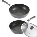 Monfish Deep Frying & Wok Pan Set 12 inch wok & stir fry pan w lid,11 inch skillet frying pan w lid Non Stick Granite Stone Finish